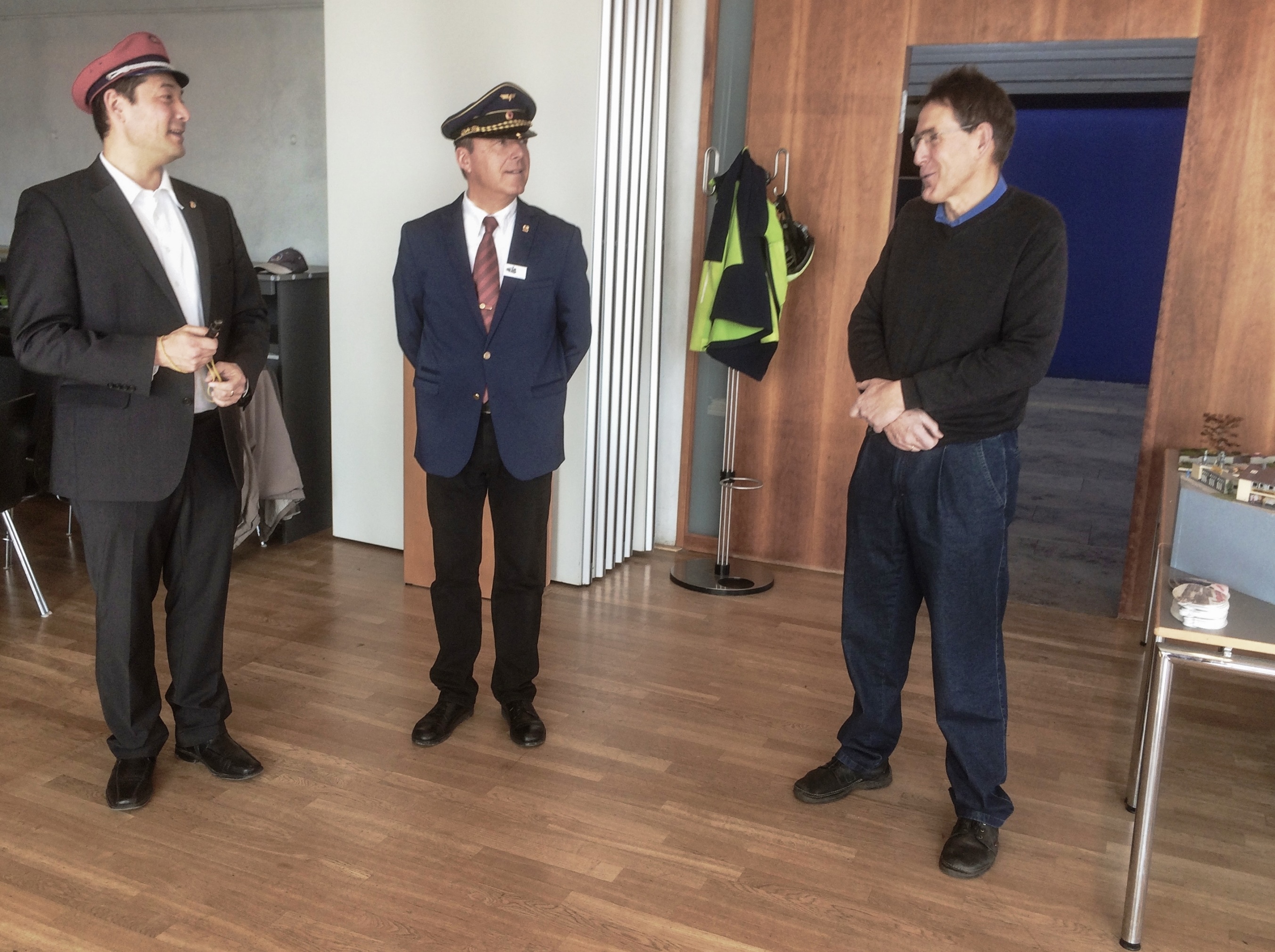 Bei der Eröffnung Ausstellung Modelleisenbahnen im KuB am 18.2.17 mit Märklin Insider Stammtisch (MIST) aus Freiburg. Bürgermeister Markus Hollemann, XXXYYY (MIST), Joachim Müller-Bremberger (1. Vorsitzender Heimat- und Geschichtsverein Denzlingen) v.l.n.r., Foto Tanzer