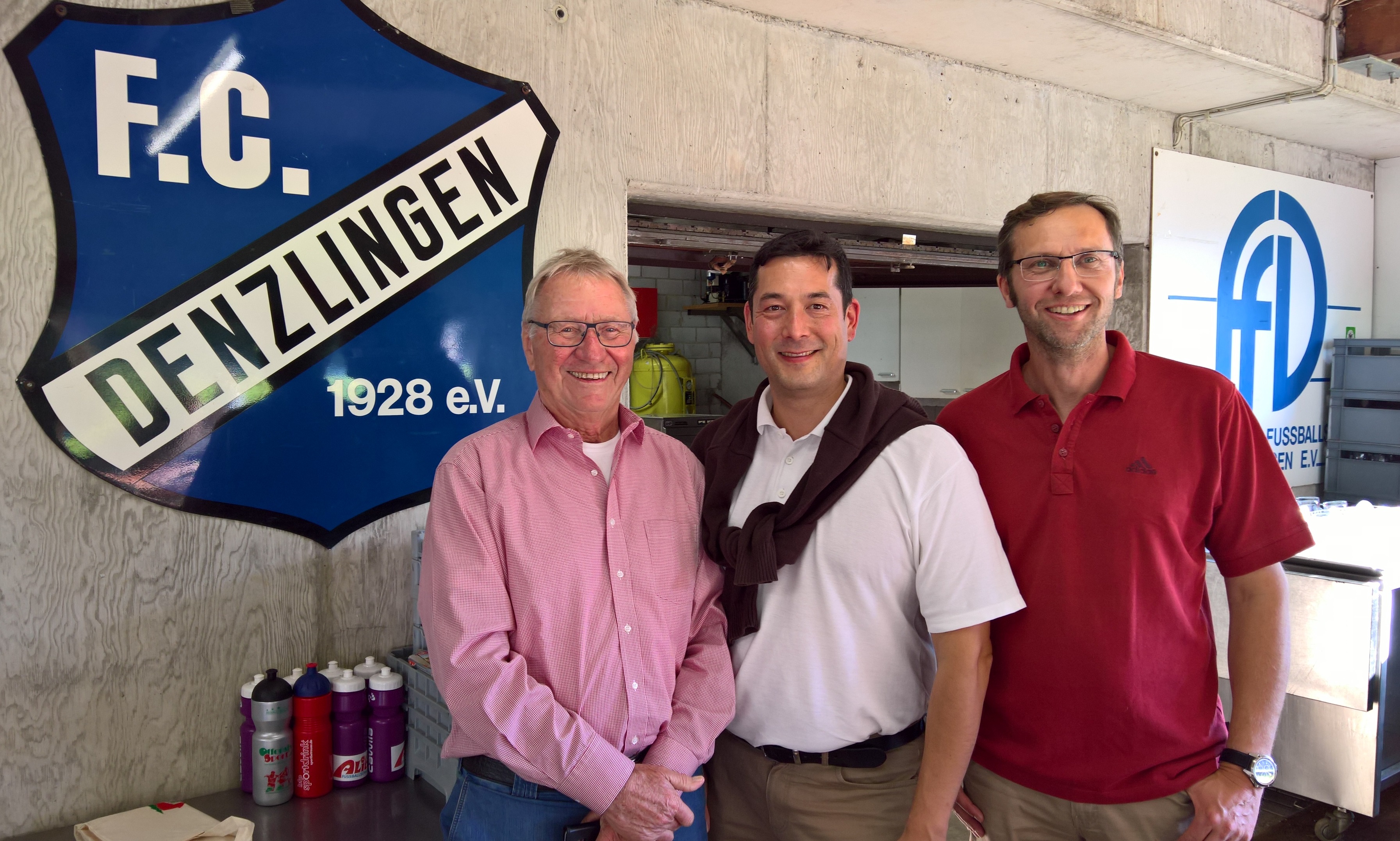 24. September 2017, Einbollen Stadion, Freude über FCD Erfolg, v.l.n.r. Horst Gerber (FCD Sponsor), Markus Hollemann (Bürgermeister), Axel Weniger (Gemeinderat und FCD Jugendtrainer)