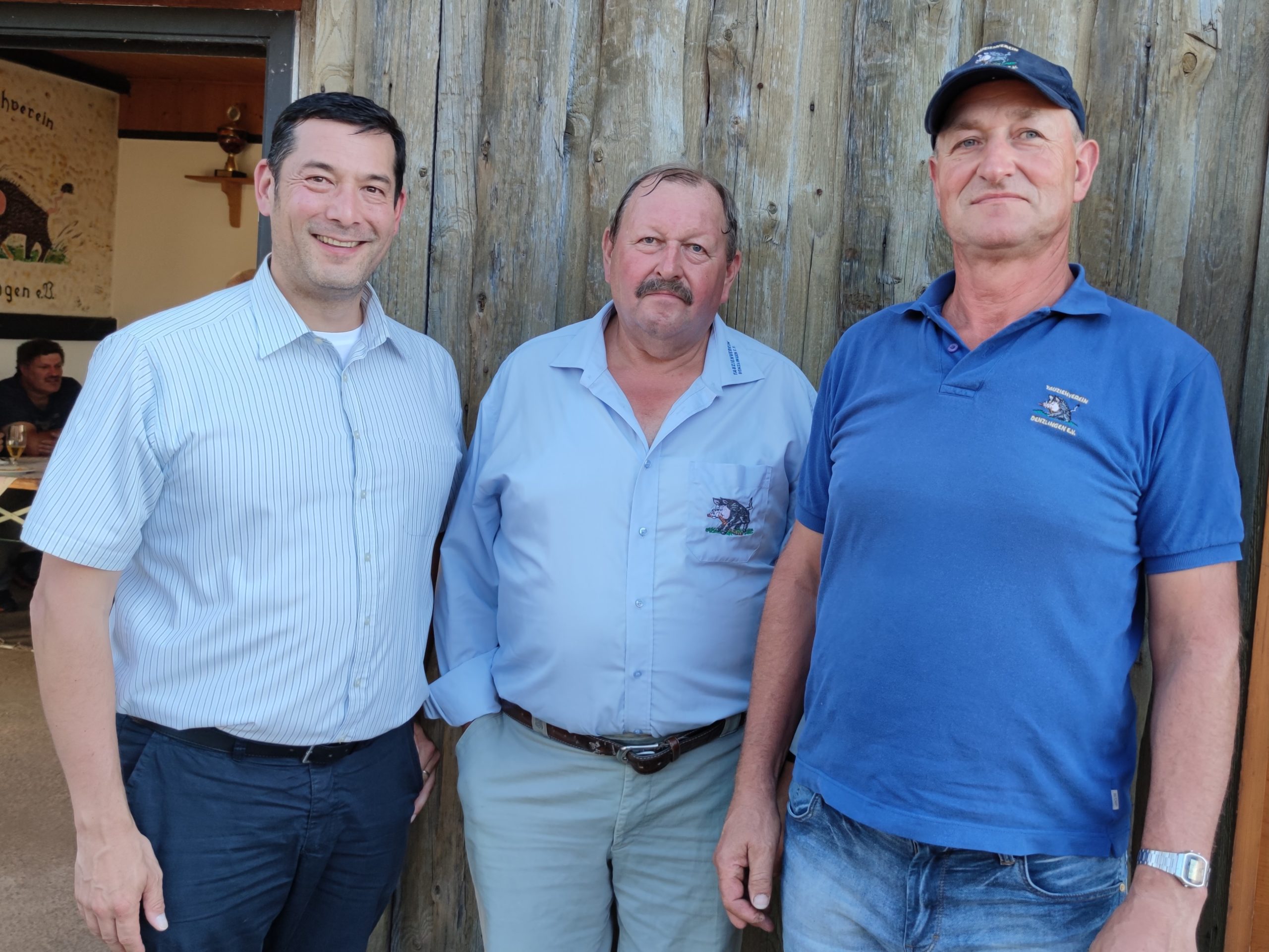 13-8-2022; 40 Jahre Tauziehverein Denzlingen – langjährige Vorsitzende Martin Schlegel und Herbert Schwaab mit Bürgermeister Markus Hollemann (vrnl)