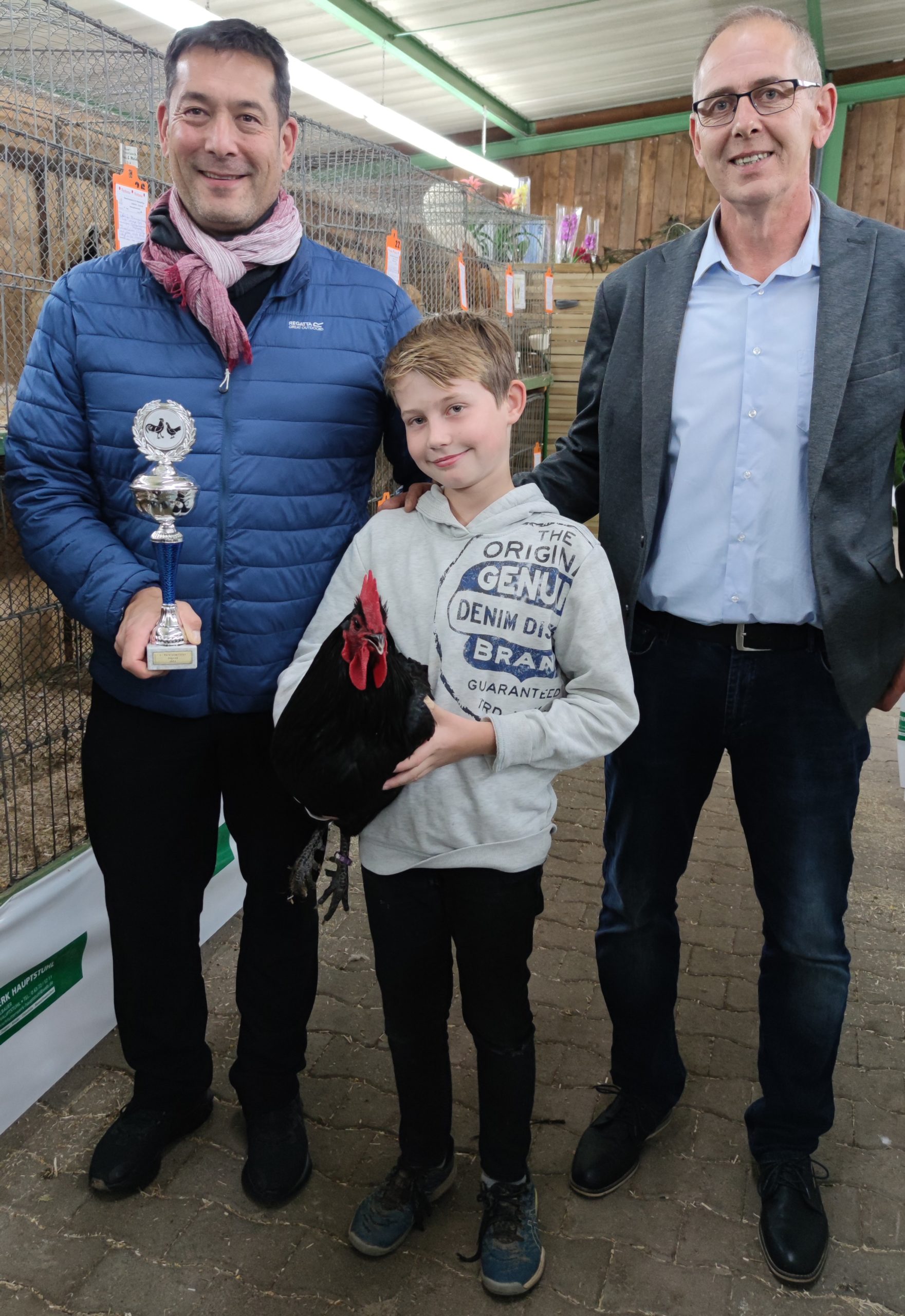 20221105 Jugendvereinsmeister Luca Eckmann vrnl Michael Doninger (1. Vorsitzender), Jugendvereinsmeister Luca Eckmann und Markus Hollemann (Bürgermeister) – Foto Verein