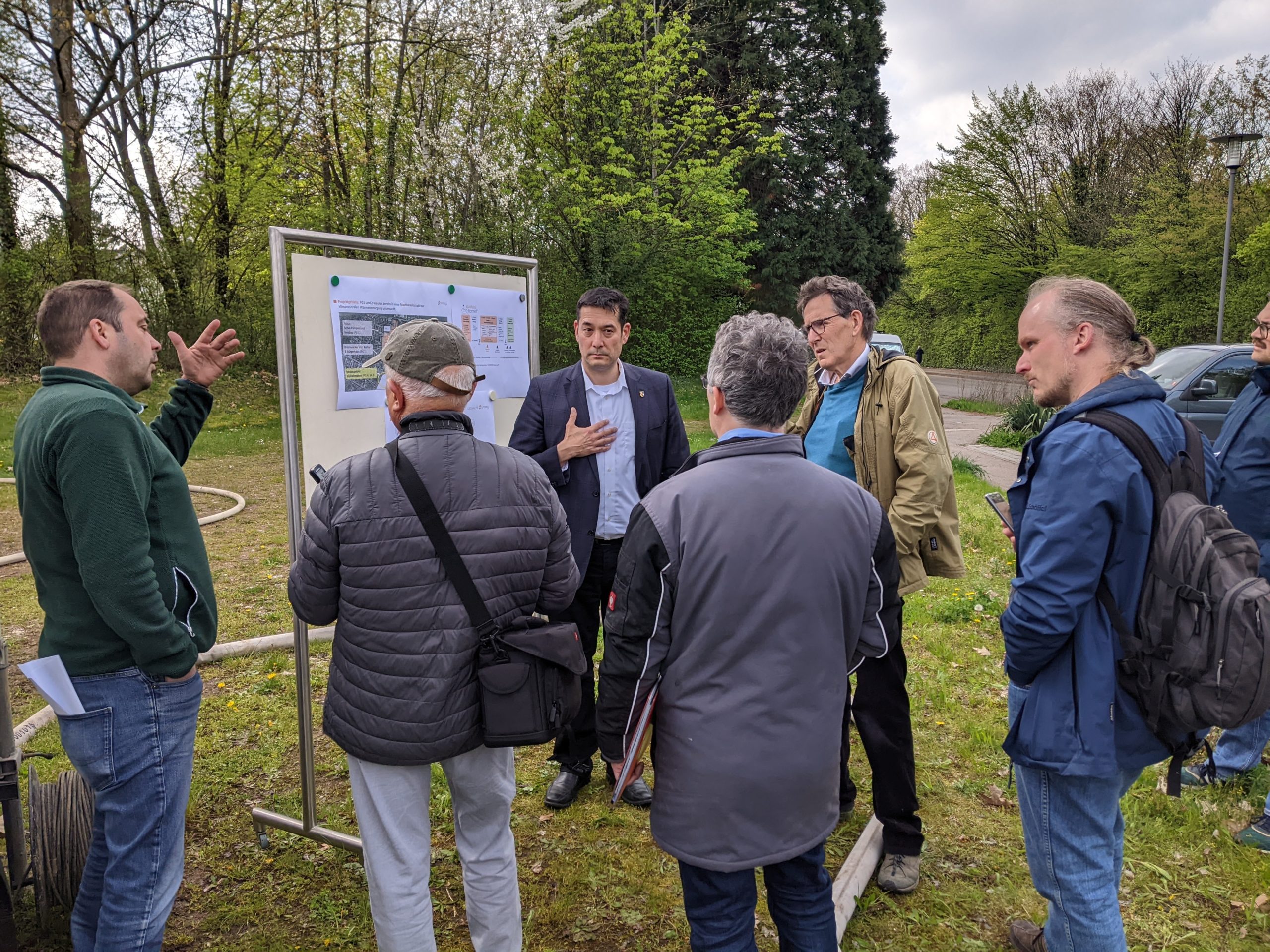 Foto: Gemeinde Denzlingen, Bürgermeister Markus Hollemann, Vertreter der Presse und David Kunz (GeoAlto)