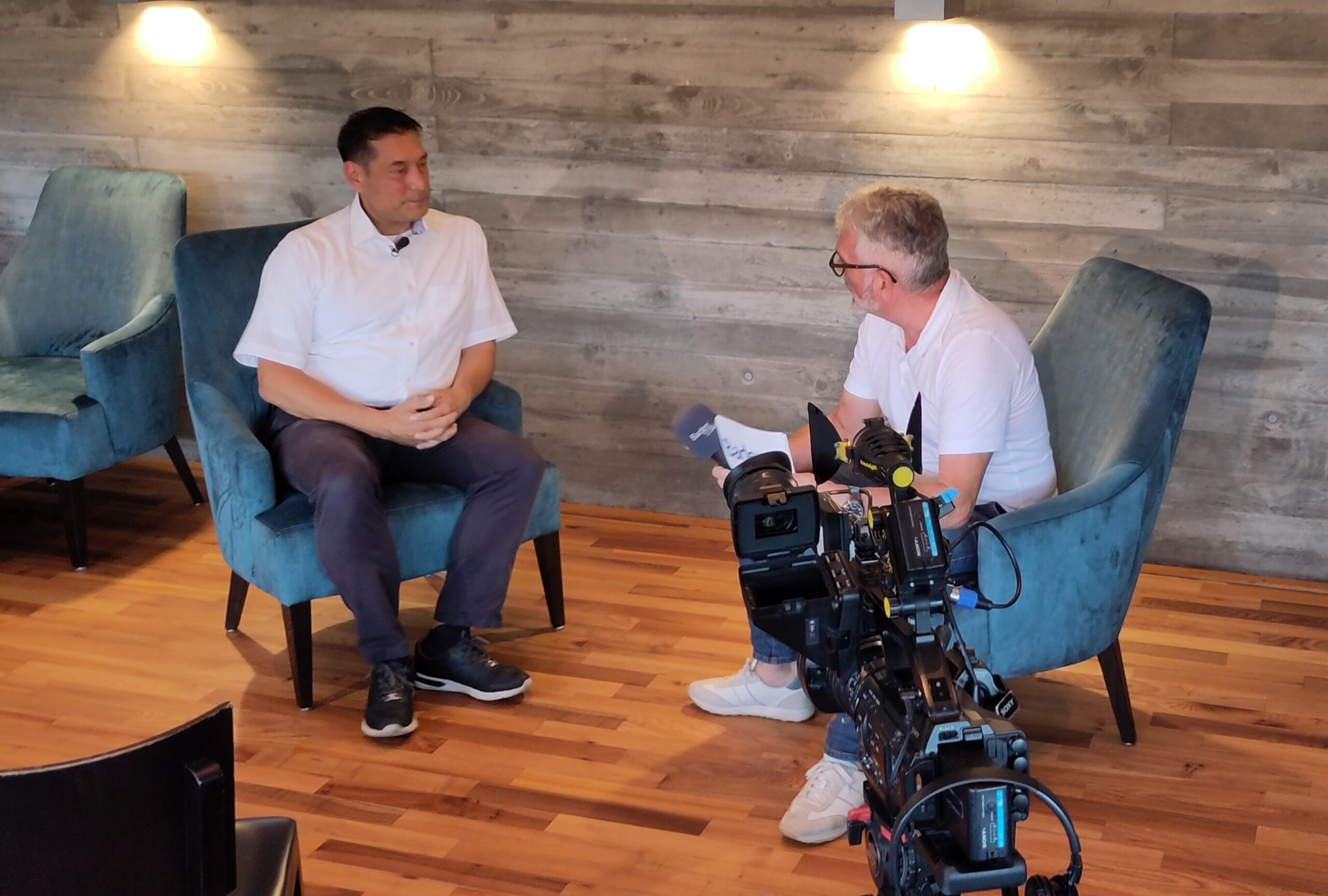 Anton Jany, Geschäftsführer von Baden TV Süd, interviewt Markus Hollemann, Bürgermeister a.D., Foto Aaron Höldin