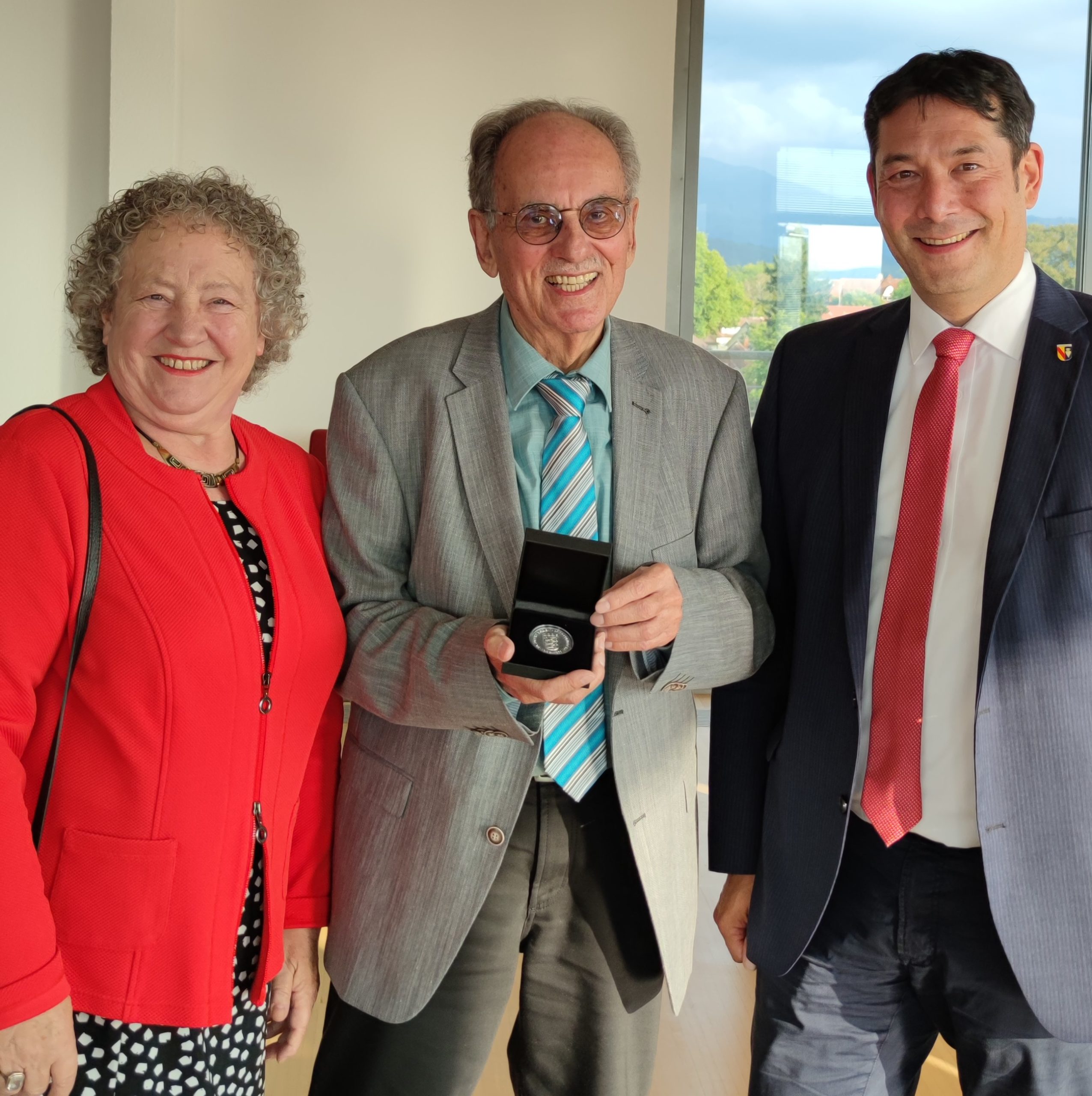 Festakt Verleihung Staufermedaille an Jochen Himpele; v.l.n.r. Maria Himpele, Jochen Himpele, BM Markus Hollemann