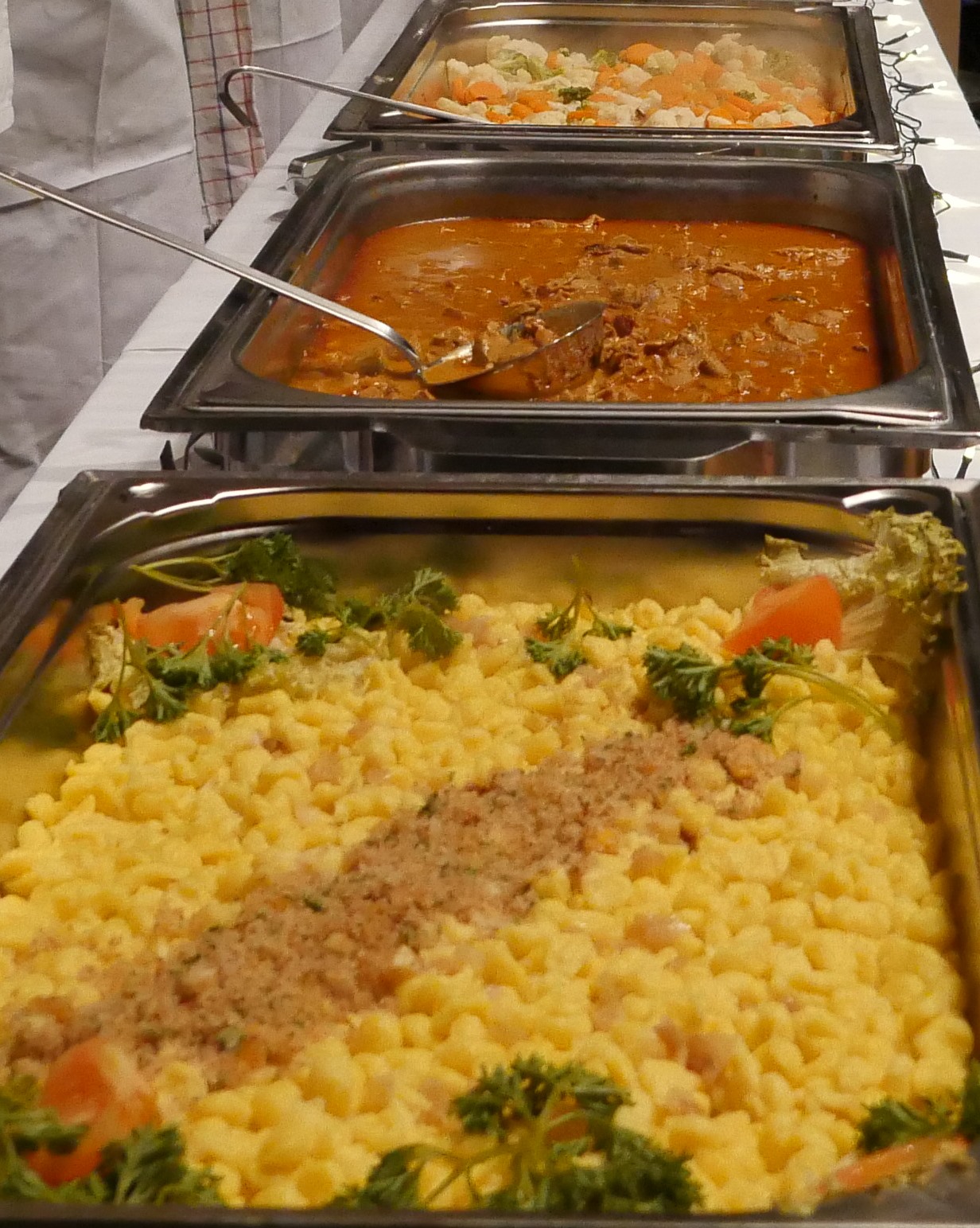 Heiligabend 2019, Hauptgang am Buffet, Sahnegeschnetzeles mit Knöpfle an Gemüse