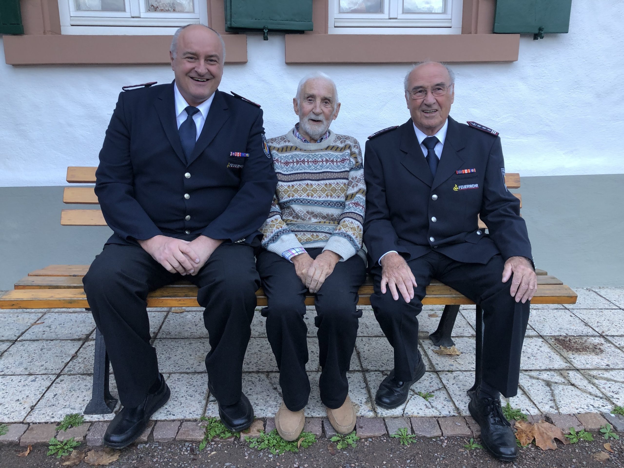 Feuerwehr gratuliert – Denzlinger Bürgerpreis 2022 an Hans Bross: Kommandant Martin Schlegel, Bürgerpreisträger Hans Bross, Ehrenkommandant Edgar Ulmer