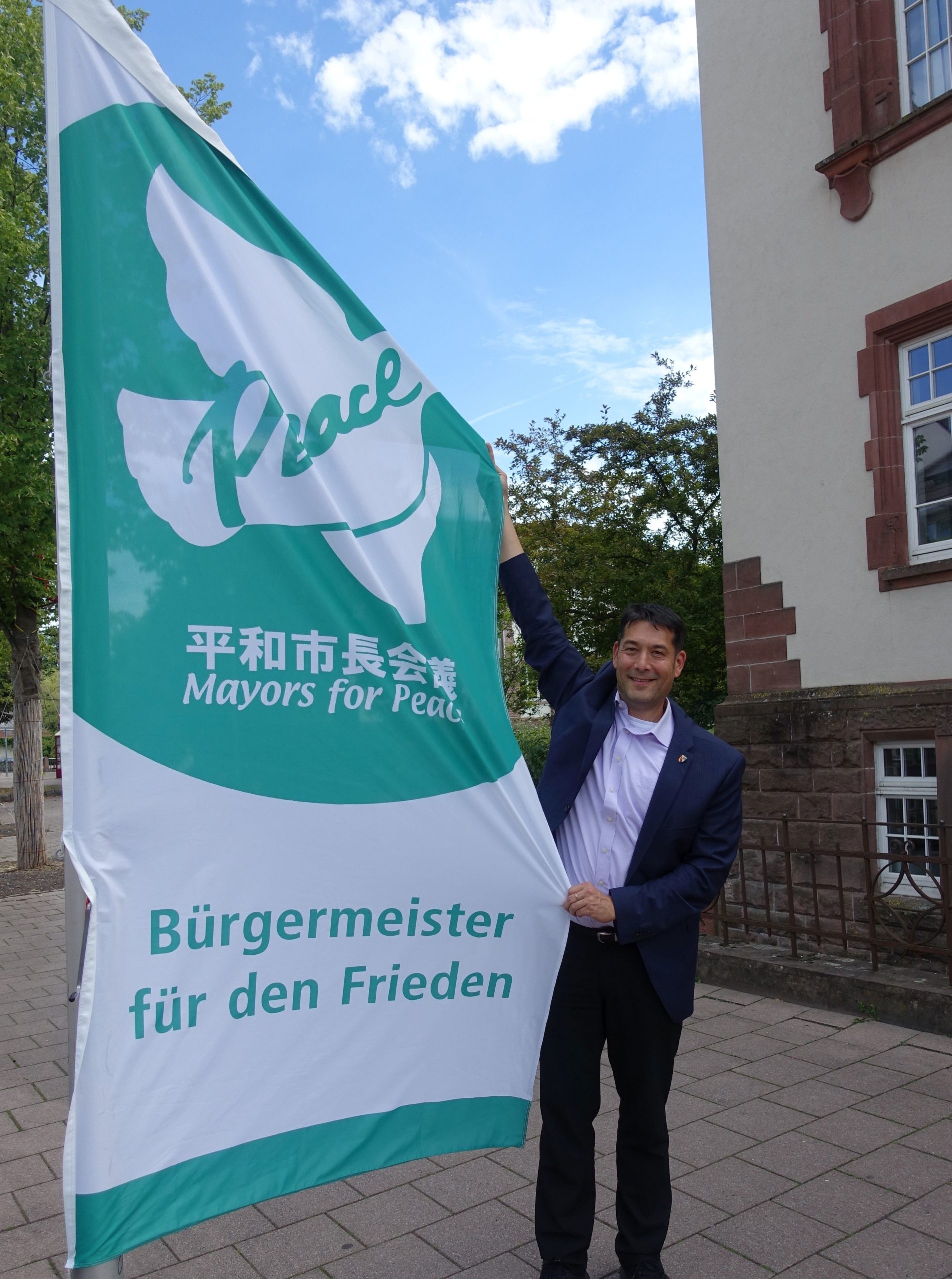 Bürgermeister Markus Hollemann hisst Flagge Mayors for Peace