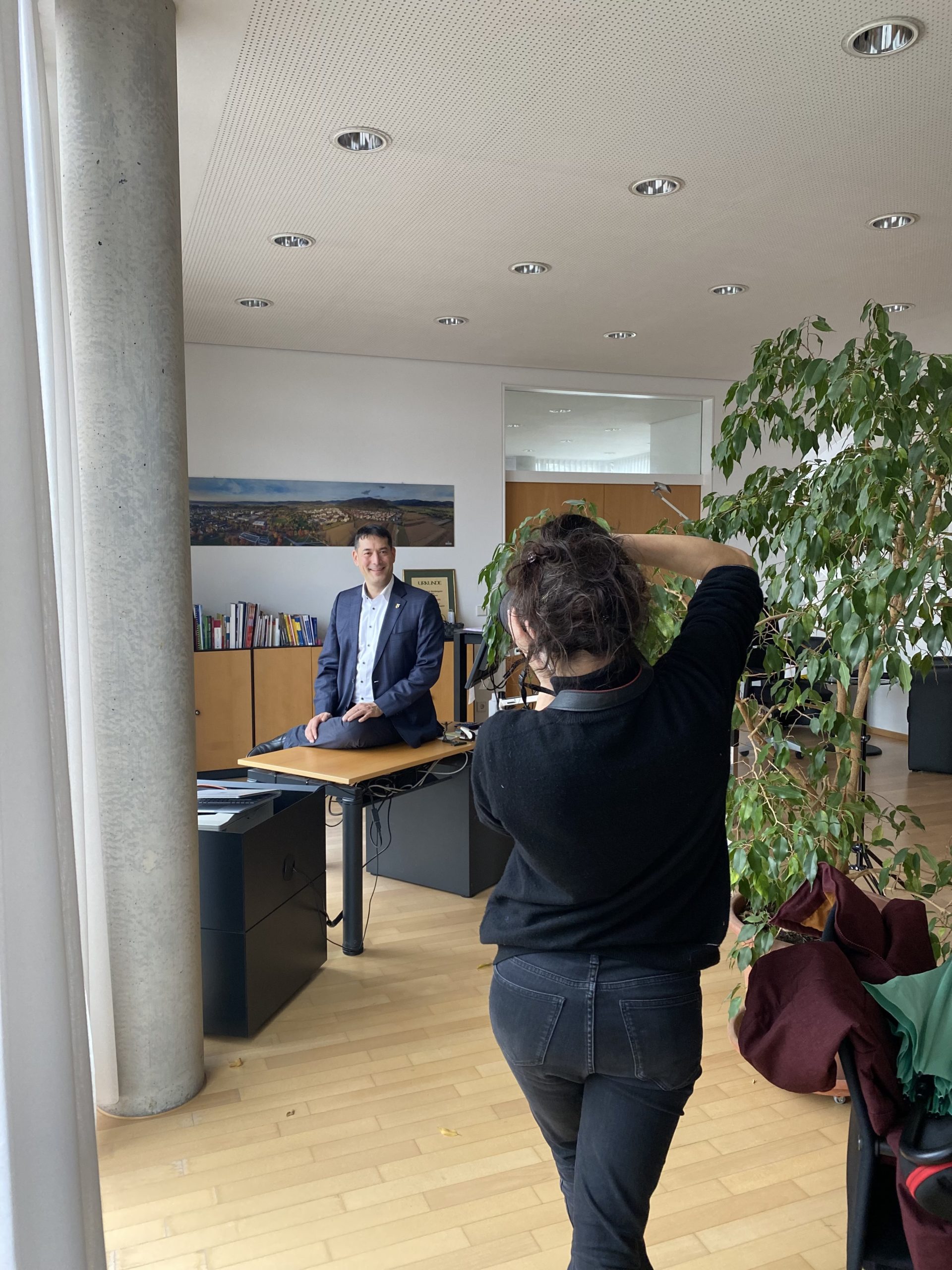 Lena Giovanazzi besucht das Denzlinger Rathaus für ein Fotoshooting für das Greenpeace Magazin mit Bürgermeister Markus Hollemann, Fotos: Gemeinde Denzlingen