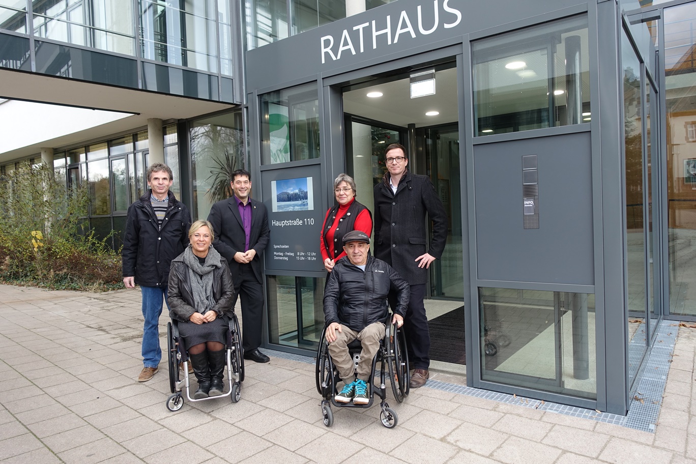 Neuer Rathauseingang, v.l.n.r. Herbert Biehler, Esther Weber, Markus Hollemann, Marianne Hermann, Bruno Stratz, Carsten Müller, Foto: Gemeinde Denzlingen