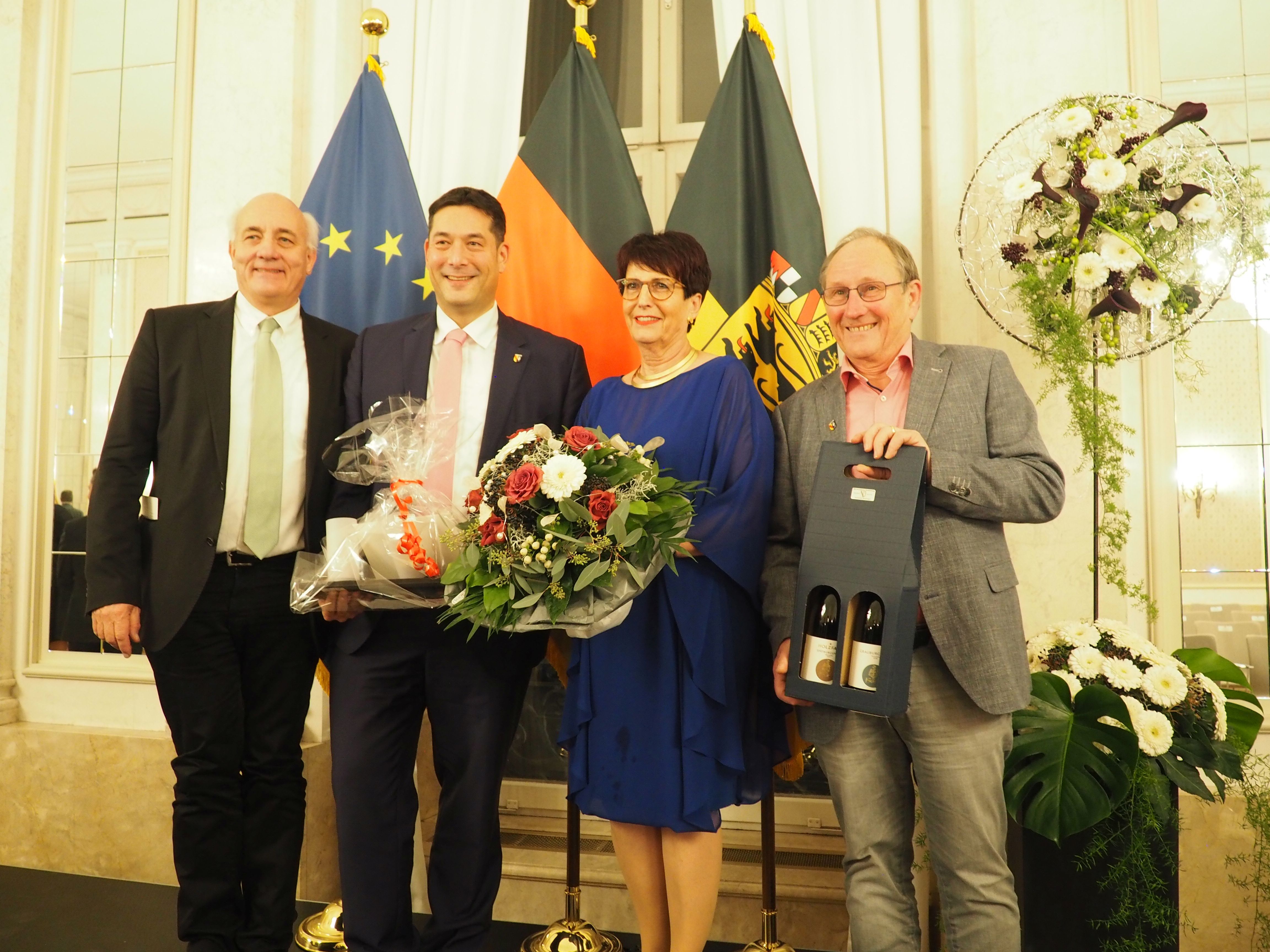 Preisverleihung Wirtschaftsmedaille im Neuen Schloss Stuttgart; v.l.n.r.: MdL Alexander Schoch, Bürgermeister Markus Hollemann, Preisträgerin Regula Schölly, Gemeinderat Willi Kieninger, Foto: Diana Rasch