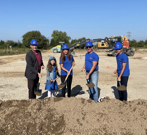 Spatenstich Marie-Curie-Straße Fliesen & Natursteinbau Firma F. Valente, Familie und BM Markus Hollemann